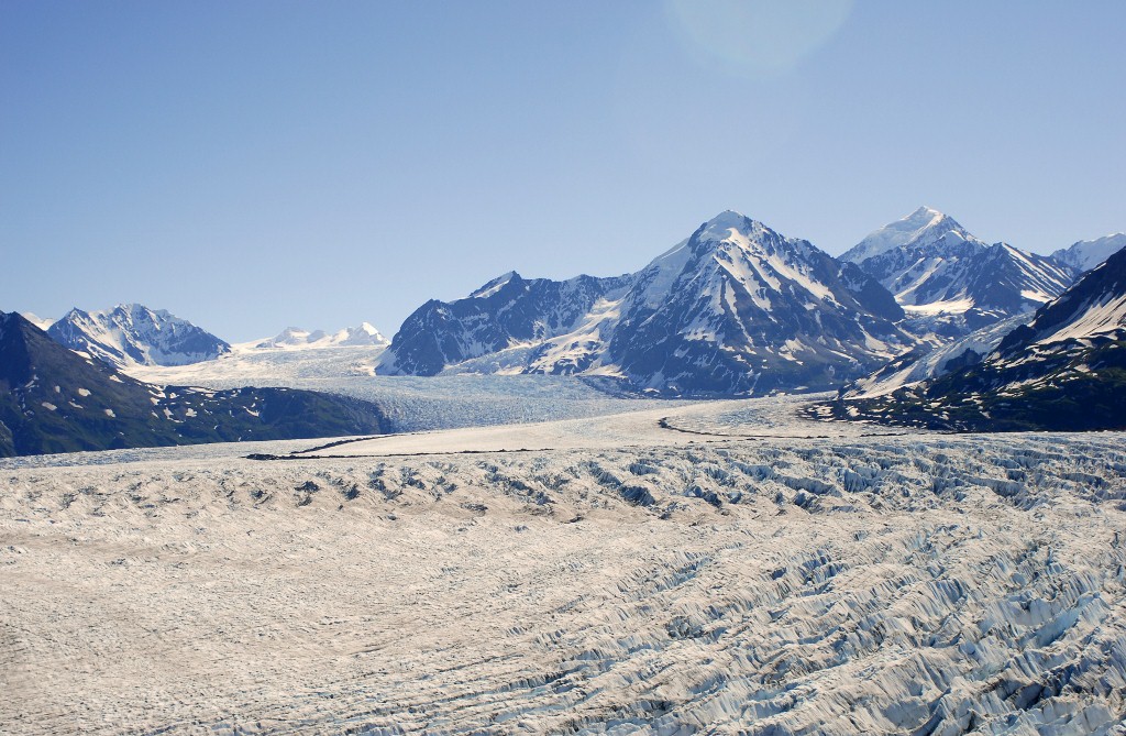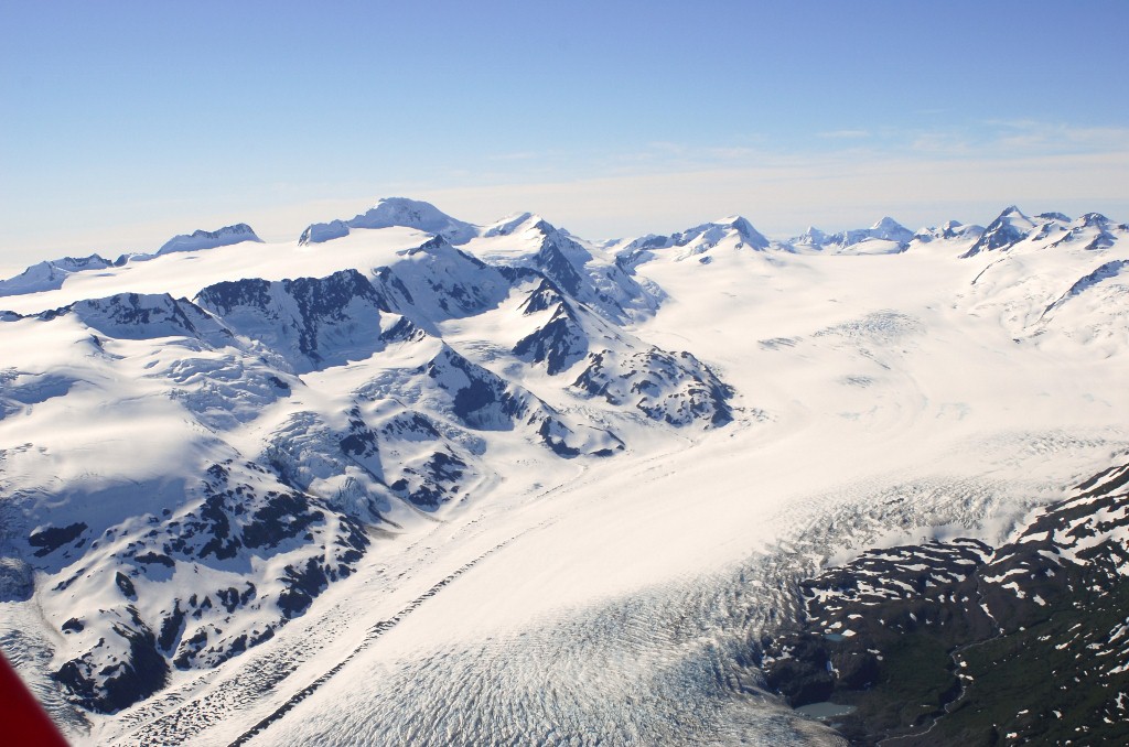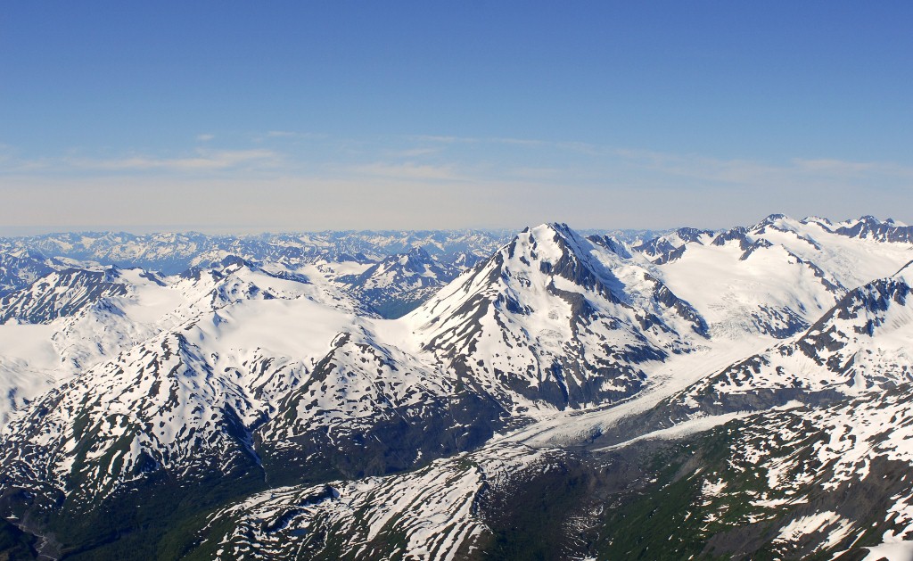 Over the top and a view of the rugged Chugach range. |
