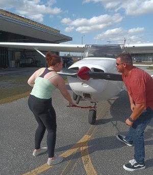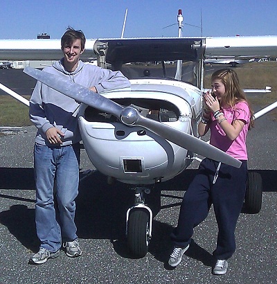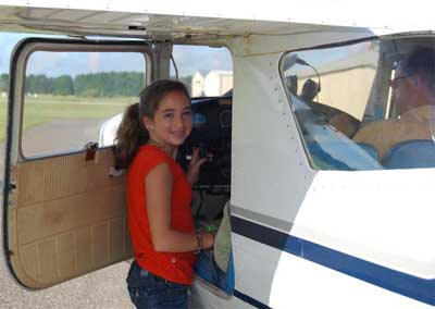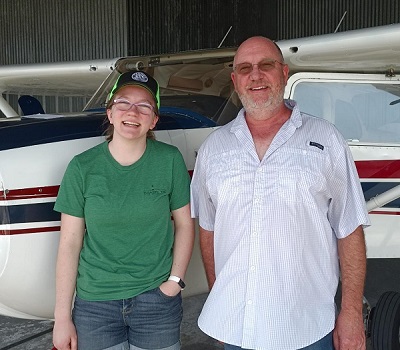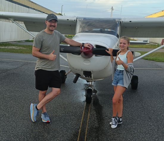 Elif "Zoom" laughs at her CFI. "Collin, can you even fit into this little C150?" Colin is an excellent instructor and has donated much time to the kids.