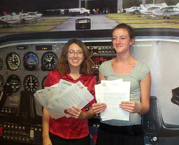Caudia Oates makes her first flight while at the controls. After an demanding ground school, with high grades, Caudia gets to take her up and show what she has learned. Good control and focus, she will make a fine pilot.  Stevo straps in for his first ride. He didn't get far as some unexpected thunderstorms closed in and we made a hasty retreat before the airport went IFR. Today Jamie got his wings. He was high score on our last exam and now gets to show what he has learned in class. We have 25 students and, so far, he is "Top Gun" but it is close.