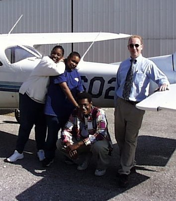 We congratulate Kenita Horsley, Keith Horsley, and Brenton Stowers. After passing the ground school part of the "Introduction to Aviation Program", and demonstrating standard flight maneuvers, our cadets were graduated as Cadets Third Class. Here are pictures of our cadets as they learn the preflight checklist with their instructor, our "Director of Flight Training", Mr. Joel Weaner. The cadets are preparing for their first cross-country flight. After an intensive preflight inspection, it was off on our cross country route that began with Brenton at the stick. He flew the first leg of our flight, Craig Airport to St. Marys Georgia. After a brief tour of the facility and a flight debriefing it was Keith's turn to demonstrate his flight skills on the second leg of our journey, St. Marys to Herlong Airport in Jacksonville. After the flight debriefing and a facility tour, it was off on the final leg to Craig Airport with Kenita at the stick. Kenita flew along the river, with a few turns around the stadium for good luck, and made her landing at Craig. We're very proud of our cadets and their aviation achievements.