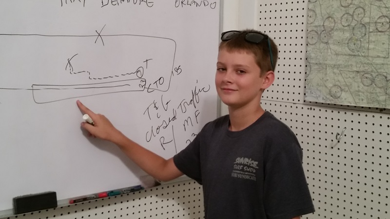 Hunter progressed from our flight club at Kings Trail into Private Pilot training at the hangar classroom at Craig Airport. He is moving along at a comfortable pace and we expect that he will make a fine pilot. Here he explains procedures for a particular flight assignment before takeoff in the Bonanza. Good job Hunter.