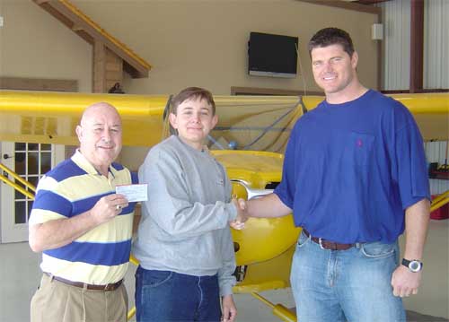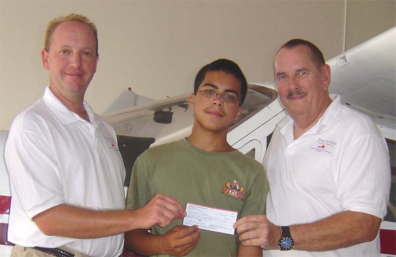 Joel Weaner (left) and Stephen Price present Ivan Ramos with a grant check from Teens-in-Flight for the EAA Summer Camp. Ivan has been in the Young Aviators program for several years and was our Student of the Year several times. We are proud of Ivan, a very good pilot and a fine young man.