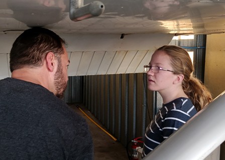 Catalina has her checklist for this bird and follows it to the letter. She learns fast there are no shortcuts when it comes to safety. She has Joe explain the dipstick in more detail. Oil is clean and full, everything looks good, what are we doing on the ground?