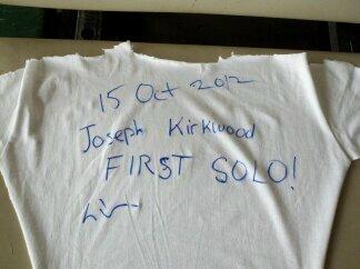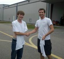 Joseph Kirkwood solos and is congratulated by his flight instructor Brian Bertka. Brian is shown with Jo-Jo after the ceremonial cutting of his shirt. A job well done by both Jo-Jo and Brian. Brian has donated many CFI hours to our students and has made a difference in the lives of our kids. Thank you Brian!