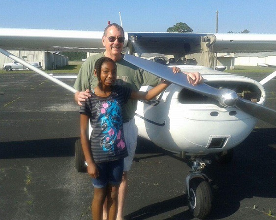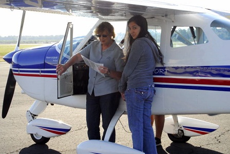 Elif gets ready for her first flight lesson. Elif is the youngest candidate ever accepted into our program at only eleven years of age. Her desire to be a Coast Guard rescue pilot, and her dedication to aviation education was a determining factor in her selection.