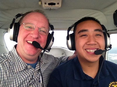Jo-Jo takes his check-ride with FAA DPE Duane Brown. Another Private Pilot gets his wings. Good job Jo-Jo. The smile says it all.   Congratulations to Austin Toth,  Giovanni Gonzalez, Ryan Peeling, Savannah Dubuc and Daniel Minami for passing the FAA Private Pilot Ground School written exam.